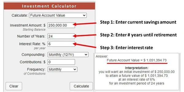 Click on "Future Value Calculator" below to find the Future Value of your current savings.