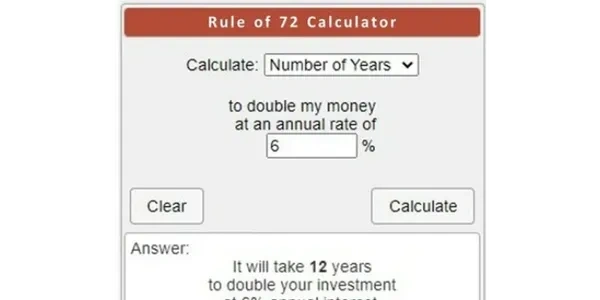 Click the "Rule of 72" below to discover how many years it takes for your savings to double and grow.